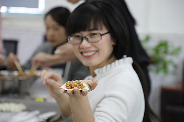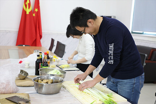 冬至宴熱鬧有序的進(jìn)行著,大家分工明確,以飽滿的熱情投入這場(chǎng)活動(dòng)中,先開始行動(dòng)的就是我們的采買小隊(duì),精心挑選食材,交于我們的帥哥-調(diào)餡擔(dān)當(dāng)。