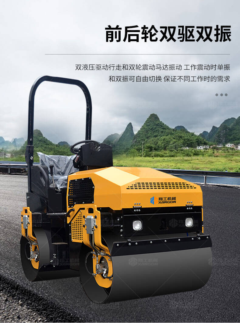 采用進(jìn)口液壓系統(tǒng),雙驅(qū)雙振,前后輪可單獨(dú)調(diào)節(jié)振動,亦可同時振動。液壓轉(zhuǎn)向,液壓驅(qū)動,液壓行走,液壓振動。進(jìn)口英國鉑金斯柴油機(jī)三缸水冷四沖程,動力強(qiáng)勁,性能穩(wěn)定。超快速度一小時可達(dá)12千米,無極變速。壓土,碎石,壓瀝青,壓回填土效果超乎想象。