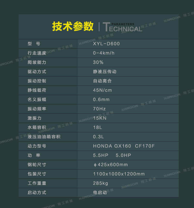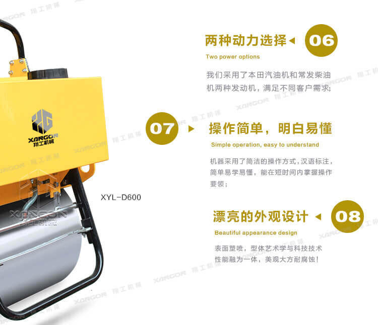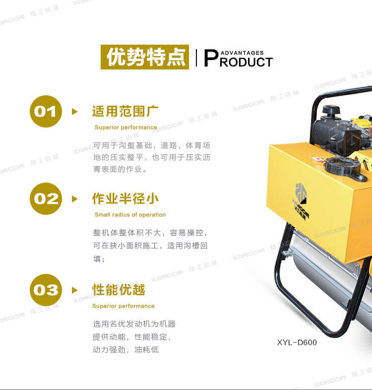 手扶單輪(汽油)壓路機進口液壓系統(tǒng)手扶壓路機XYL-D600主要用于溝渠基礎(chǔ),道路,體育場地的壓實整平,也可用于壓實瀝青表面的作業(yè)。