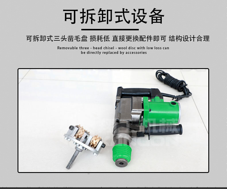 電動手持式鑿毛機 金剛石三頭鑿毛設備 小型水泥路面拉毛機。該鑿毛機型主要應用于高鐵、高速公路橋面、隧道、水利水電、核電、市政道橋、大型集裝箱場地、停車場、室內外混凝土地面翻新除險加固等混凝土面層鑿毛工程