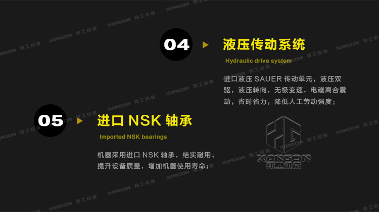 采用國(guó)際SAUER液壓傳動(dòng)單元,無(wú)級(jí)變速,液壓轉(zhuǎn)向,換向方便;