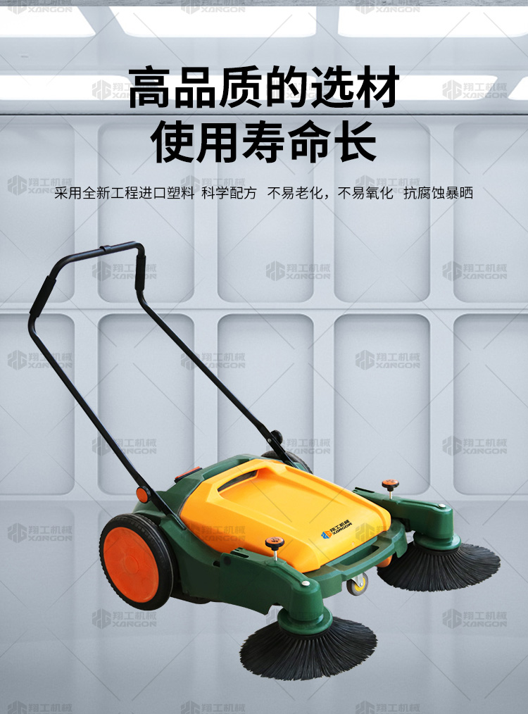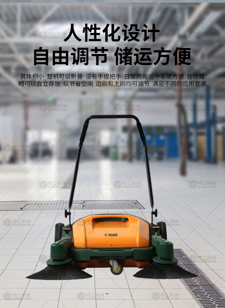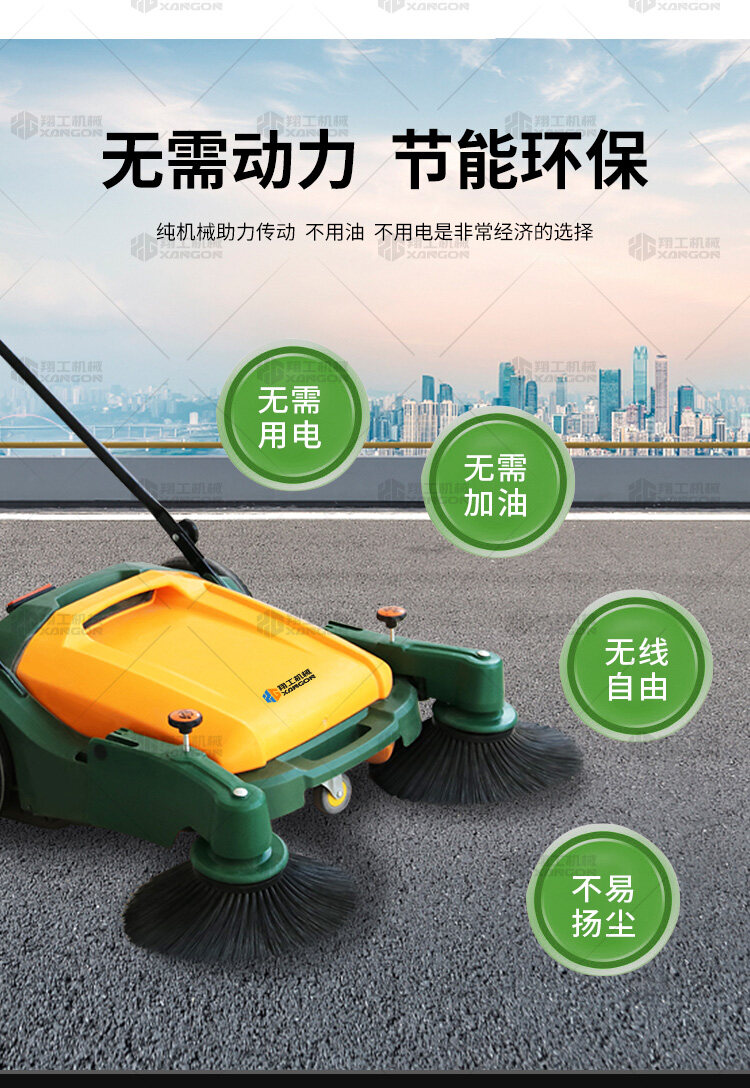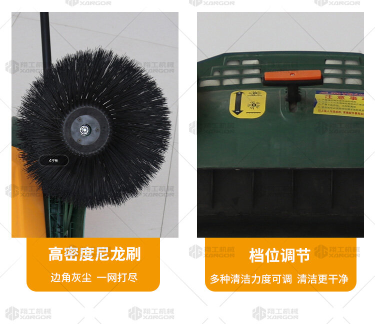 X920型全自動(dòng)手推式掃地機(jī)能清潔房屋周邊范圍:包括小路,公路,車道和院子,能比普通的掃把和簸箕節(jié)省5倍的時(shí)間,清掃時(shí)垃圾被迅速的收集到塵箱,簡(jiǎn)單、快速、干凈。