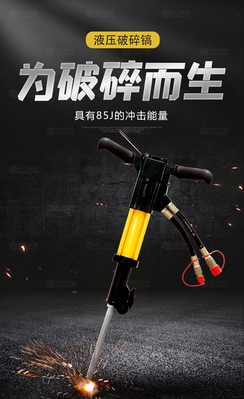 沒(méi)有哪個(gè)破碎鎬工具有液壓破碎鎬那樣的沖擊破碎能力。液壓破碎鎬的功率在所有鎬類工具中是高的,而其工作噪音也遠(yuǎn)比氣動(dòng)工具要小。