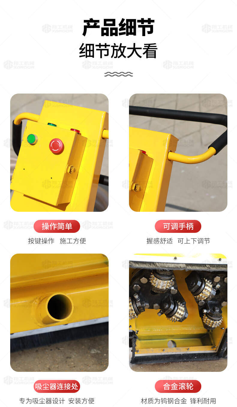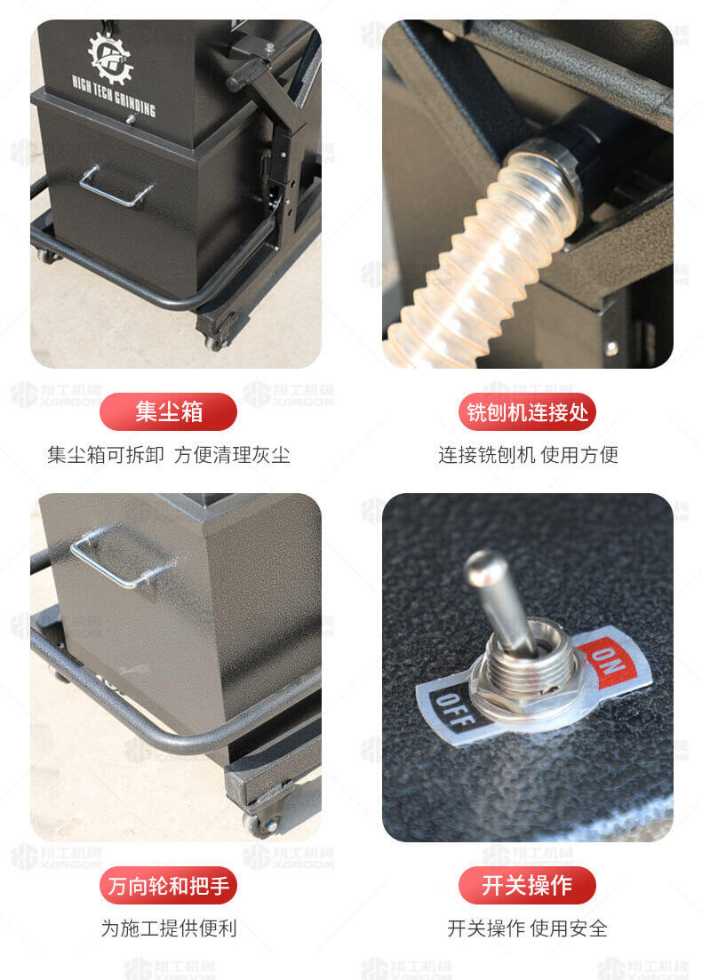 此款設備同時具有銑刨和鑿毛功能,并且?guī)в形鼔m接口,與吸塵器相連接,解決銑刨鑿毛過程中的粉塵問題,減少粉塵對環(huán)境以及人體的危害..
