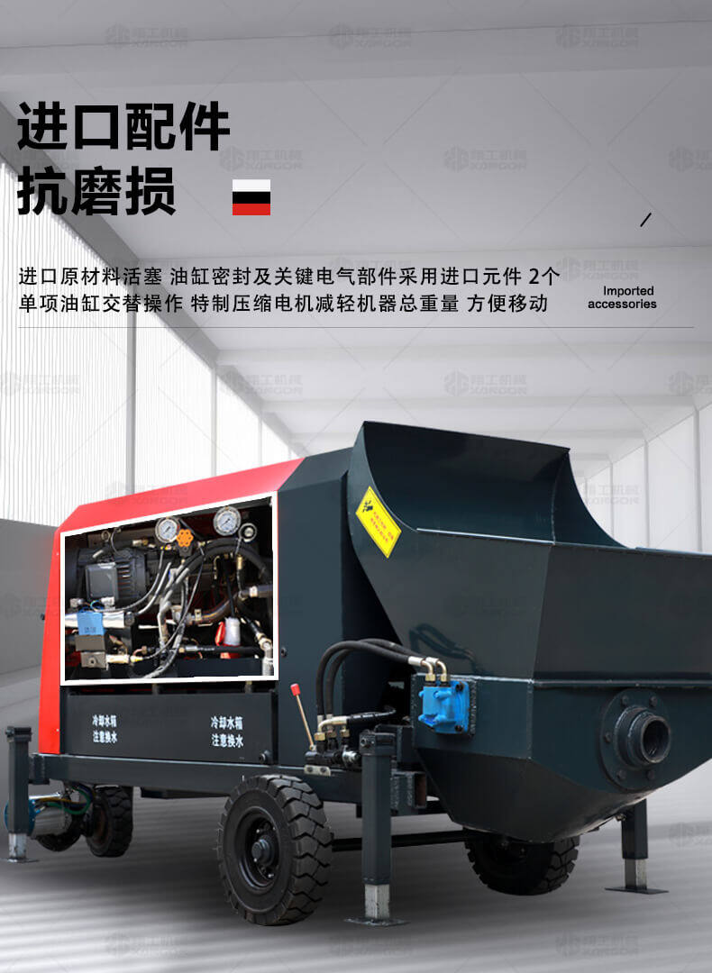 這款7.5KW型澆筑泵帶有自動攪拌功能,性能可靠,設備各個結構制造科學,電機功率大、性能穩(wěn)定、施工效率高等優(yōu)勢,使用電動澆筑泵大大提高了施工效率,降低勞動強度,節(jié)約人工,被廣泛應用。是工程施工的好幫手。