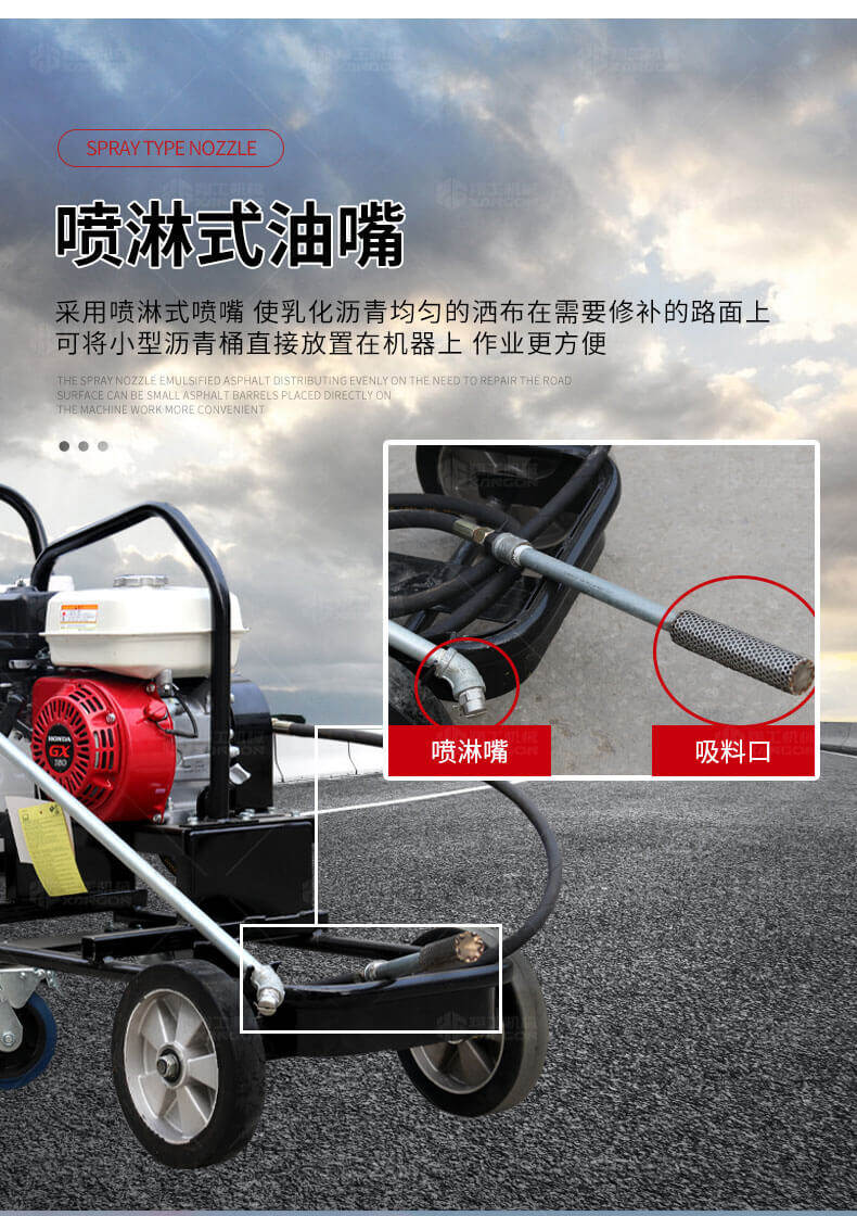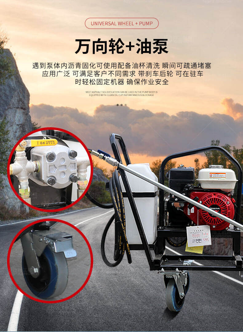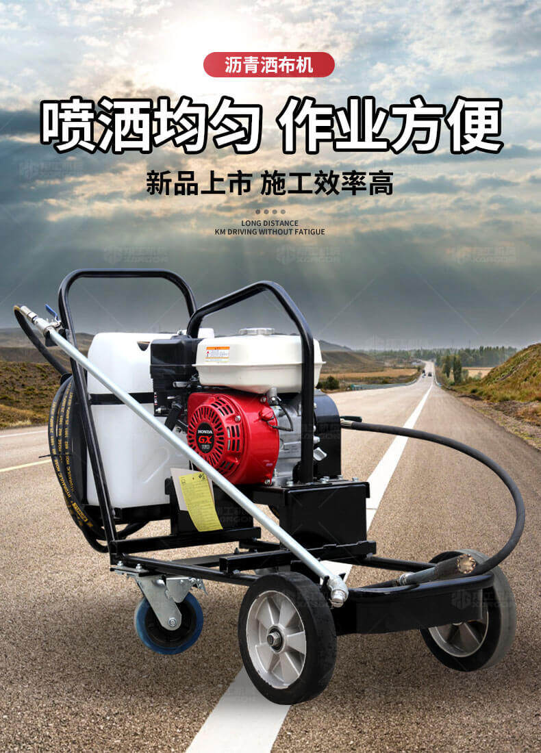 小型乳化瀝青撒布機(jī)用于修補(bǔ)瀝青道路上的坑槽,裂縫或?qū)磳⒗匣穆访孢M(jìn)行表層噴層修復(fù)翻新,由于在養(yǎng)護(hù)瀝青道路時(shí)經(jīng)常需要對路面均勻噴灑乳化瀝青或防水材料。