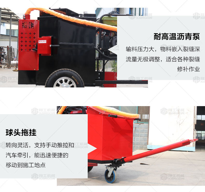 瀝青灌縫機(jī)主要使用原料為瀝青灌縫膠,主要用于瀝青路面不規(guī)則裂縫的處理,恢復(fù)路面平整。