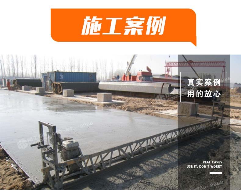 混凝土整平機(jī)用于混凝土地面的提漿、壓實(shí)、整平,是修建公路、車間、廣場(chǎng)的新型設(shè)備。