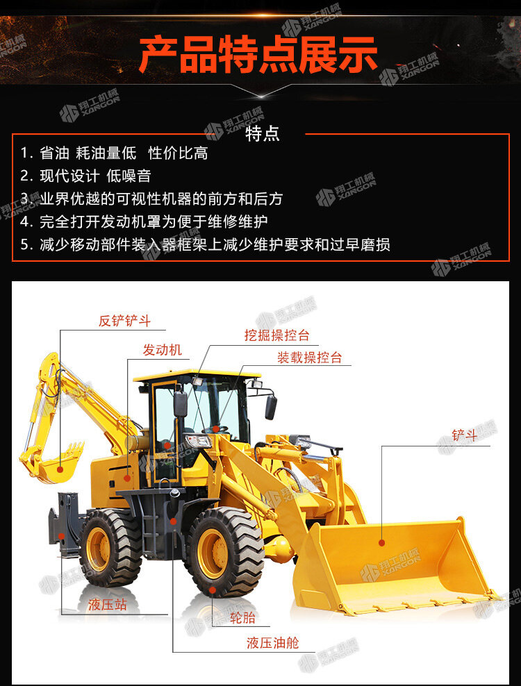 挖掘裝載機主要用于城市和農(nóng)村的公路建設(shè)及養(yǎng)護、電纜鋪設(shè)、電力和機場工程、市政建設(shè)、農(nóng)田水利建設(shè)、農(nóng)村住宅建設(shè)、開山取石以及各種小型建筑隊所從事的各種建筑施工工程。