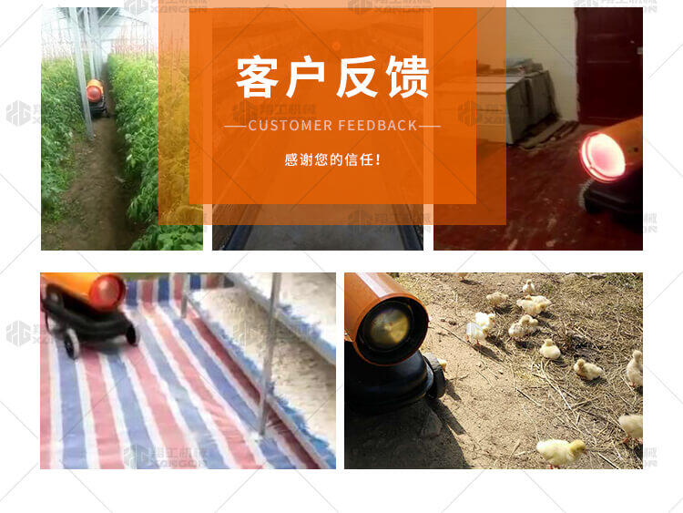 燃油暖風(fēng)機(jī)可對(duì)禽畜取暖,育雛取暖,花卉養(yǎng)殖,大棚蔬菜瓜 果,商場(chǎng),車間,展會(huì)進(jìn)行取暖。