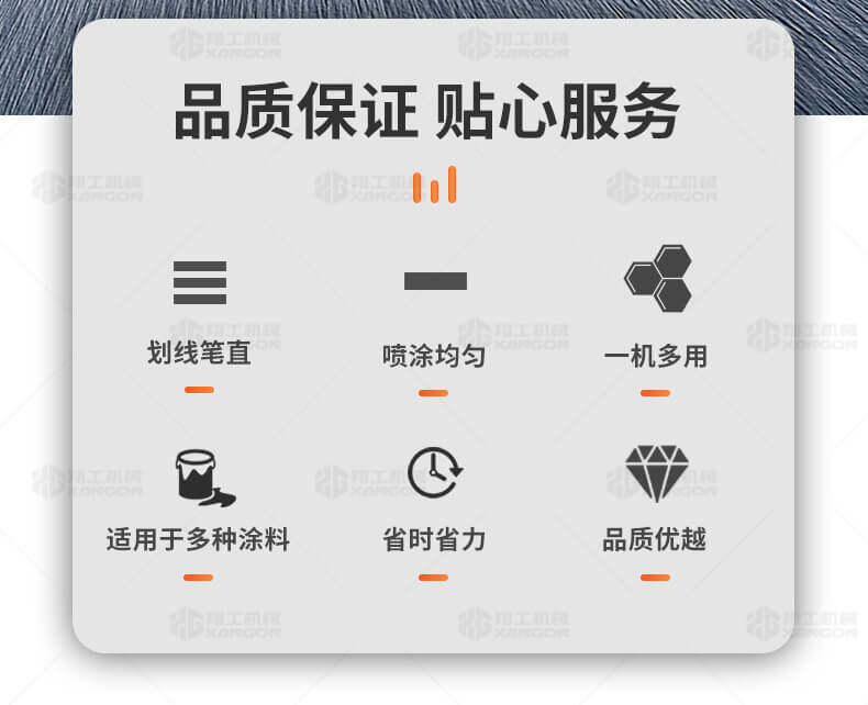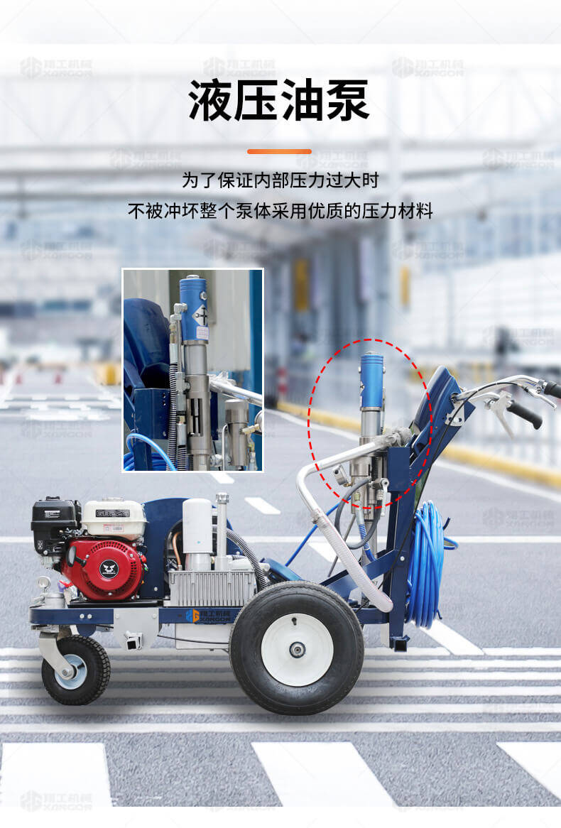 主要用于公路、市區(qū)、停車場、機(jī)場等涂劃直線、虛線、曲線、文字、箭頭等。具有劃線效果好、速度快、效率高、適用范圍廣、使用方便等優(yōu)點(diǎn)。