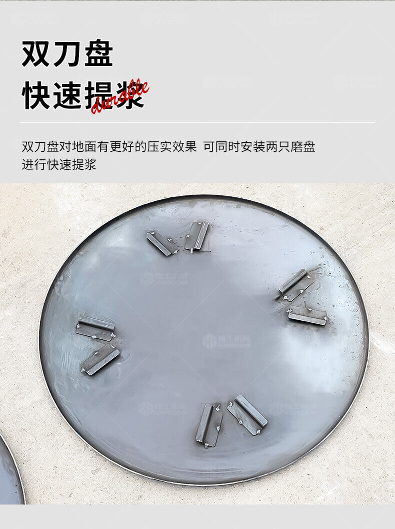 座駕式抹光機(jī)用于混凝土地面的提漿、壓實(shí)、抹平、抹光,座駕式操作大大降低了操作者勞動(dòng)強(qiáng)度,提高了作業(yè)效率。