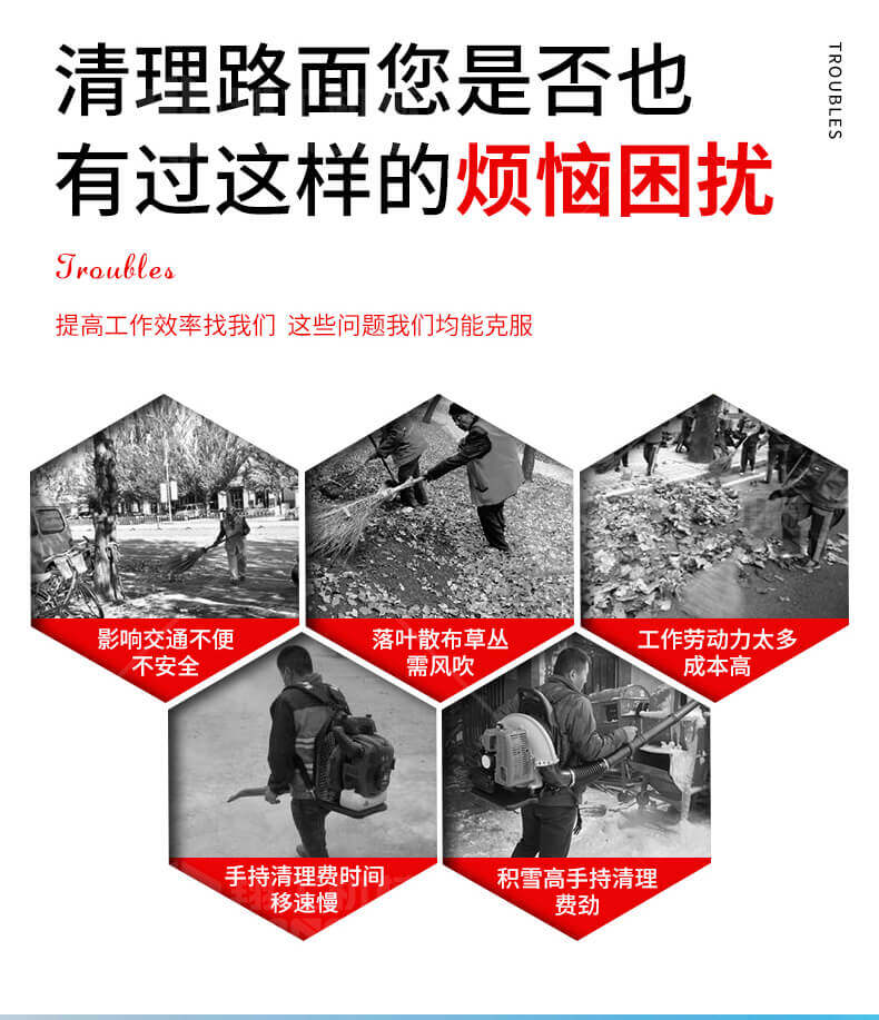 高速公路應(yīng)急車道日常清掃;各種場合積雪、樹葉快速吹掃;結(jié)冰路面快速撒布融雪劑;