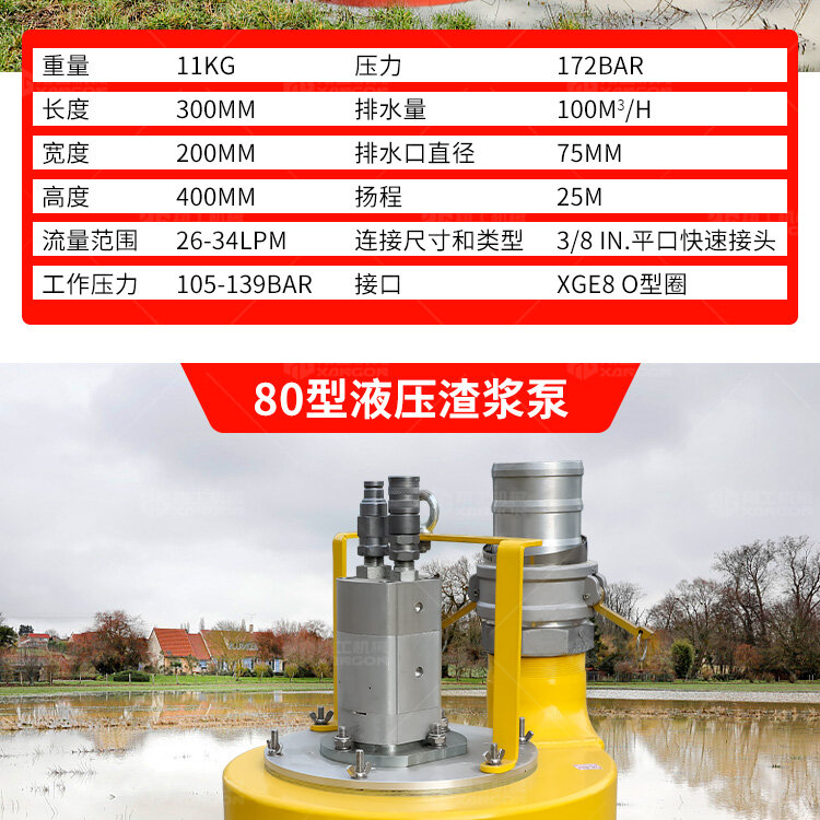 4英寸渣漿泵是一種大型的潛水泵,可以輸送更大量的水、泥漿、砂漿,它可以將直徑4英寸/10cm以下的固體顆粒排出。