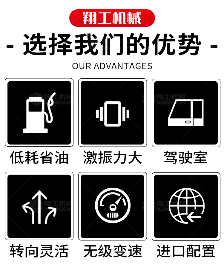 壓路機(jī)液壓振動(dòng),激振力大,工作效率高。