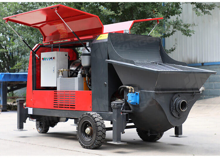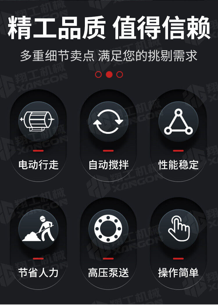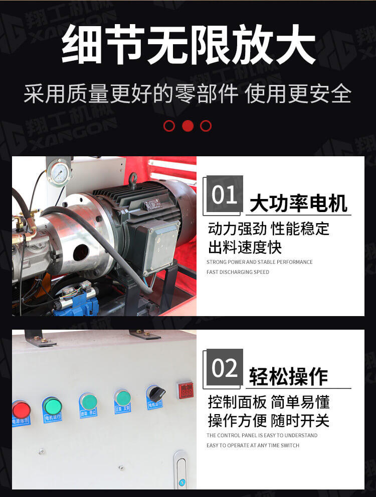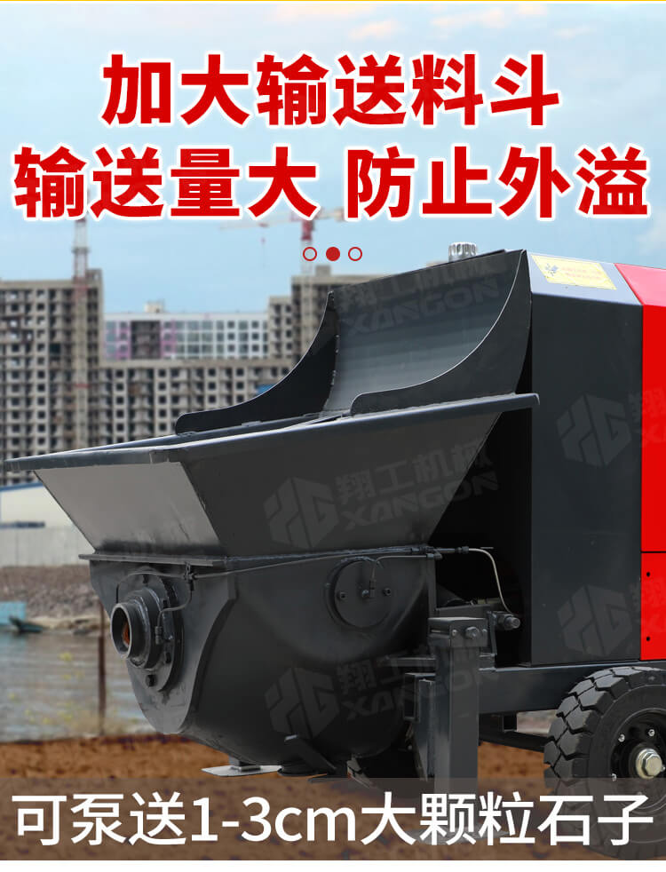 采用獨(dú)創(chuàng)的泵車尾輪驅(qū)動(dòng)系統(tǒng)輕松解決移動(dòng)時(shí)帶來的各種困難;采用雙排風(fēng)冷散熱系統(tǒng)散熱效果更好,液壓系統(tǒng)采用壓力更高,性能更穩(wěn)定的柱塞式自動(dòng)變量主油泵,采用先進(jìn)的三維立體壓模一體式自動(dòng)攪拌料斗可輸送機(jī)制砂,高標(biāo)號混凝土,有效緩解積料問題。