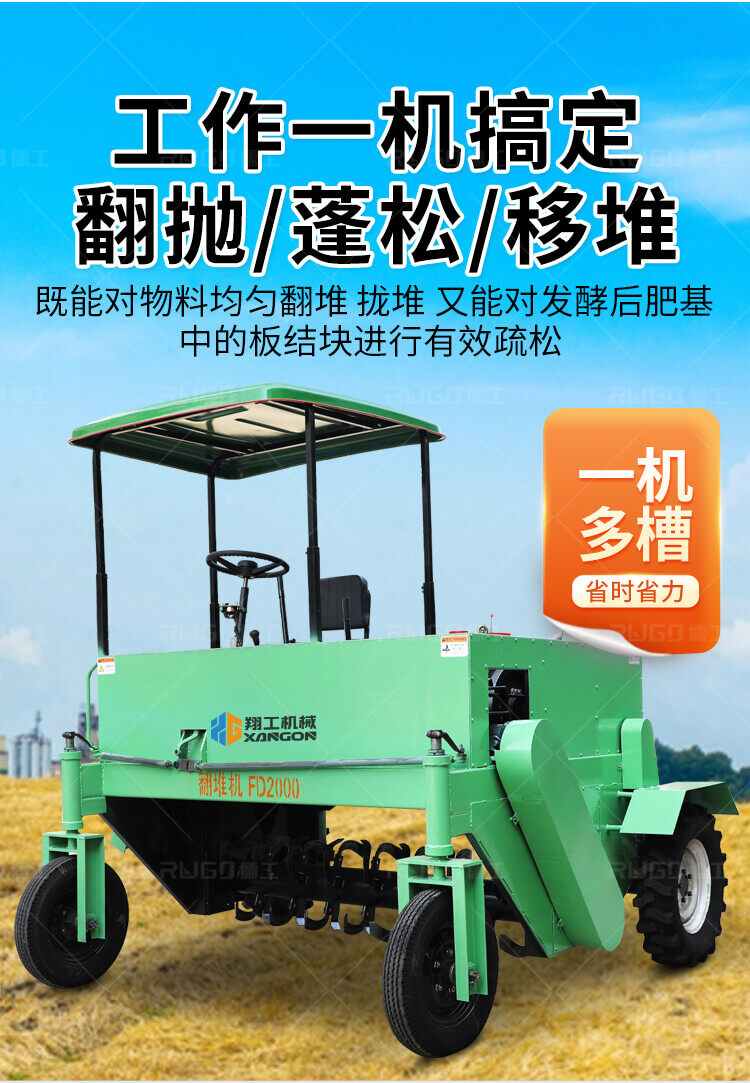 RY-LSFD2000型地面翻堆機(jī)是以畜禽糞便、污泥、酒糟、糠醛渣等粘稠物料,采用條垛式堆肥發(fā)醇工藝,生產(chǎn)有機(jī)肥進(jìn)行翻堆的專用機(jī)械。