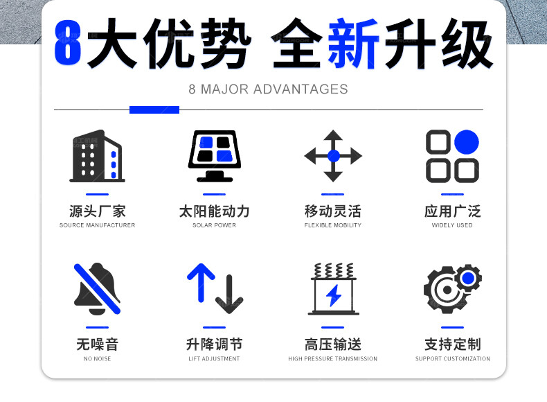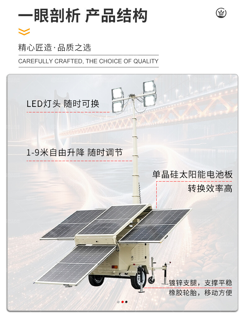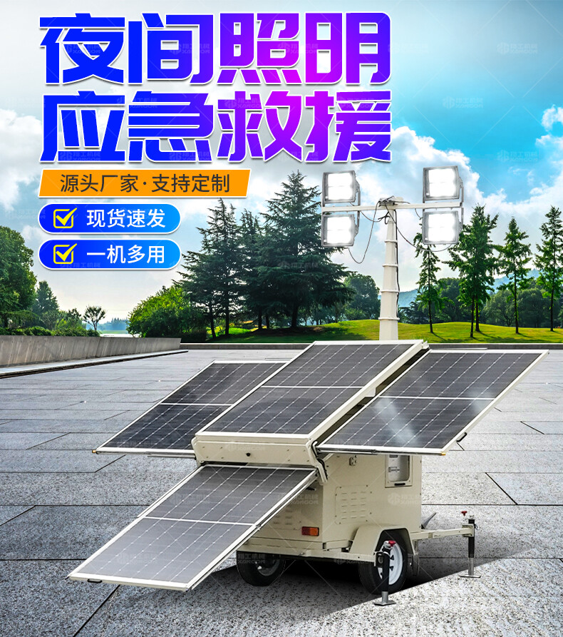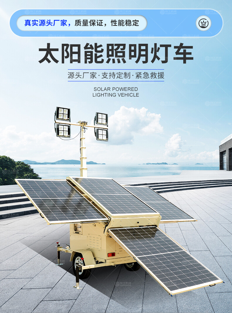 太陽(yáng)能燈車(chē)采用高效光伏板與鋰電池組合,白天蓄電,夜間自動(dòng)照明,節(jié)能環(huán)保。配備高亮度LED燈,照射范圍廣,適用于道路施工、應(yīng)急搶險(xiǎn)、夜間作業(yè)等場(chǎng)景。移動(dòng)靈活,防水防塵,無(wú)需外接電源,續(xù)航持久。結(jié)構(gòu)堅(jiān)固,操作簡(jiǎn)便,是戶(hù)外臨時(shí)照明的理想選擇,兼顧經(jīng)濟(jì)性與實(shí)用性。