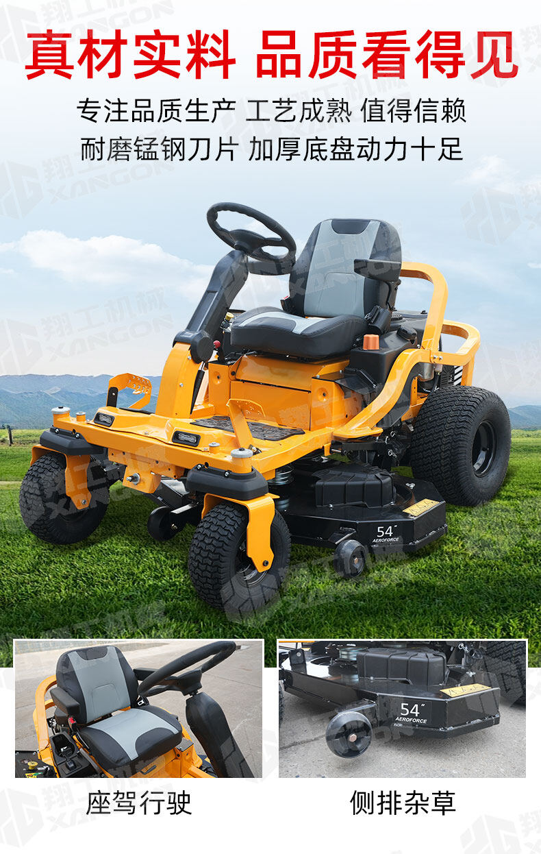 XG-54座駕遙控割草機(jī)是一款集高效、安全與舒適于一體的大型草坪養(yǎng)護(hù)設(shè)備。它創(chuàng)新性地融合了座駕與遙控兩種操作模式,賦予用戶極大的靈活性。設(shè)備動(dòng)力強(qiáng)勁,切割效率高,能輕松應(yīng)對(duì)復(fù)雜大面積草場(chǎng)。其人性化設(shè)計(jì)顯著降低了操作者的勞動(dòng)強(qiáng)度,是園林綠化、市政廣場(chǎng)等專業(yè)領(lǐng)域進(jìn)行高效草坪管理的理想選擇。