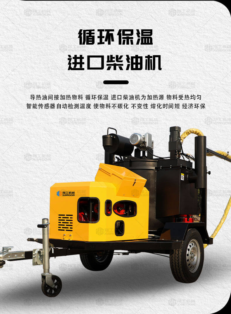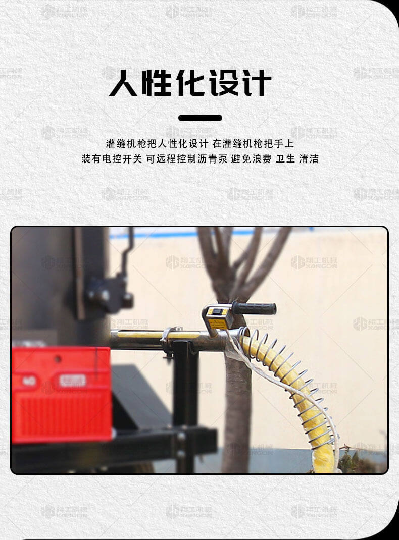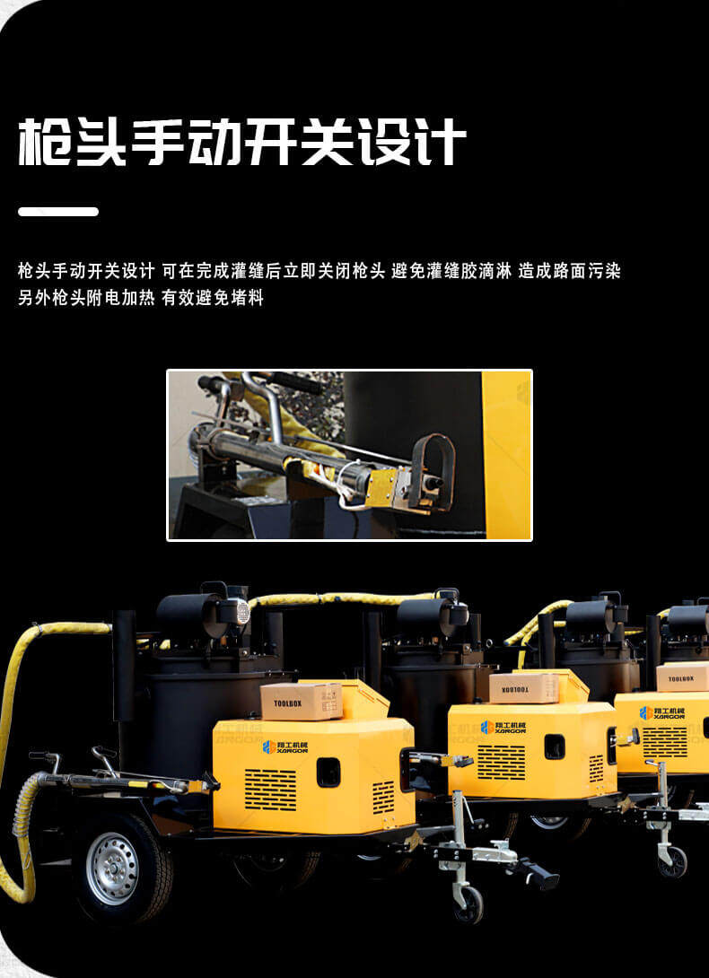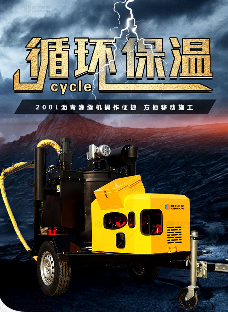 XGF-200瀝青灌縫機(jī)使用原料為瀝青灌縫膠,主要用于瀝青路面不規(guī)則裂縫、混凝土路面、橋梁伸縮縫、上下水道、煤氣管埋設(shè)機(jī)鋪裝路面的連結(jié)處防水處理,是翔工機(jī)械專門設(shè)計、生產(chǎn)的瀝青補灌縫機(jī)械。